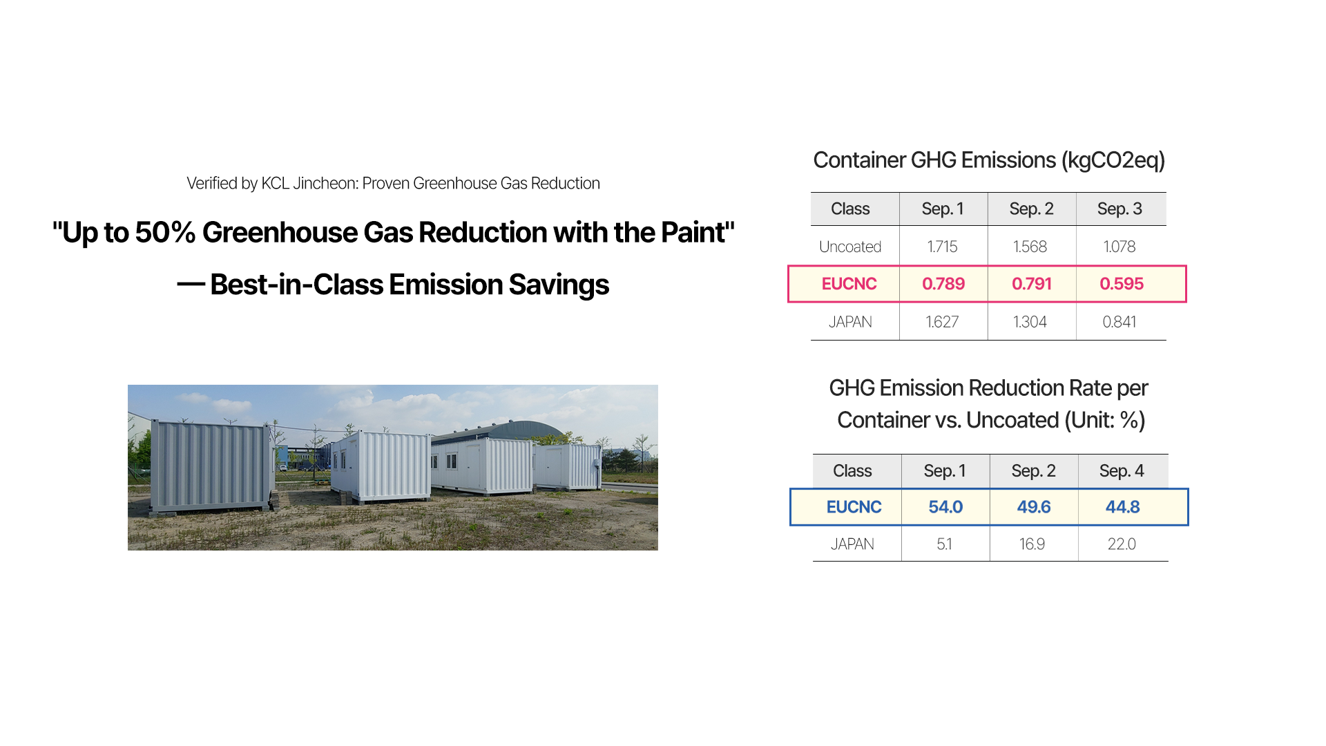 - 8~13℃ reduction in room temperature when EUCNC paint is applied