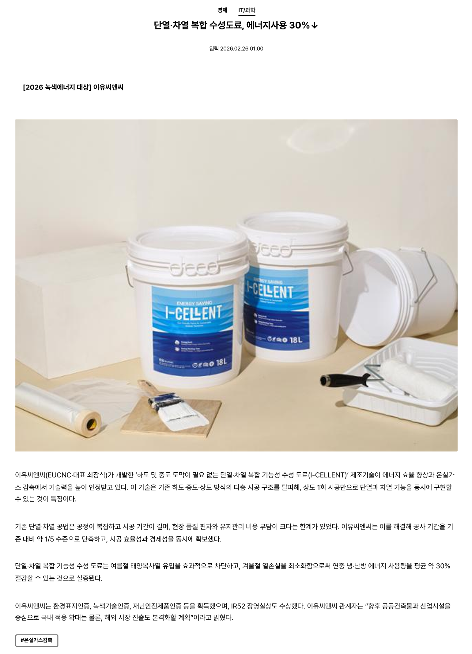 인류를 위한 환경보전을 선도하고 친환경 에너지 절감 및 탄소 저감 페인트 시장을 선도하는 이유씨엔씨입니다.