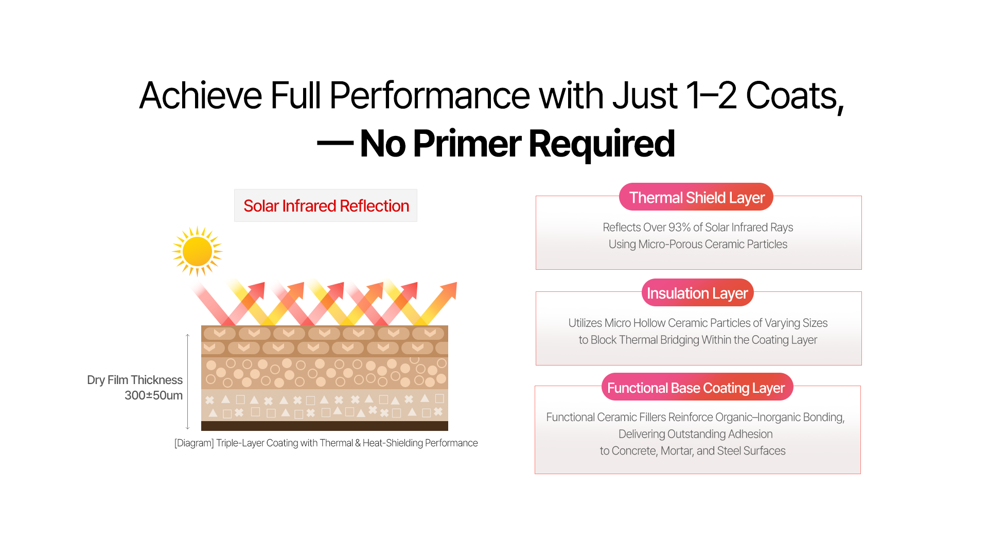 Low surface temperature due to Heat shieding effect after apply paint