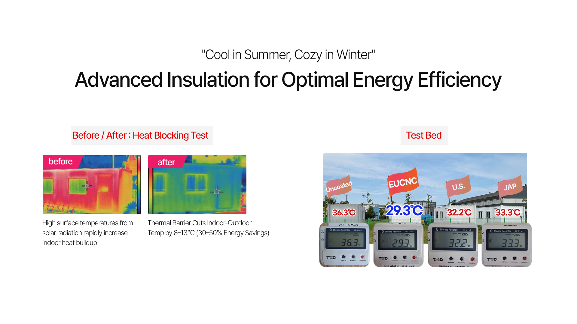 - 8~13℃ reduction in room temperature when EUCNC paint is applied
