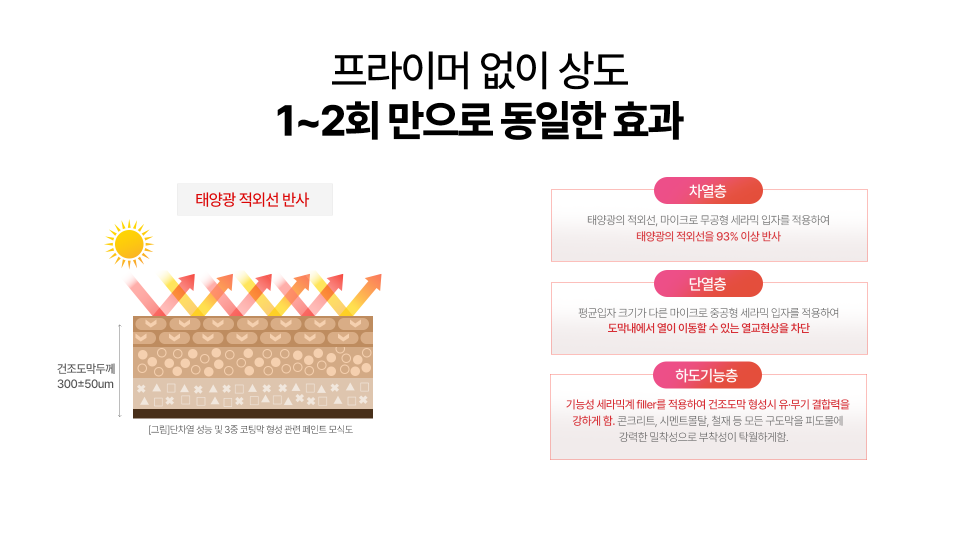 - 프라이머 필요없이 상도 1~2회만으로 적용가능