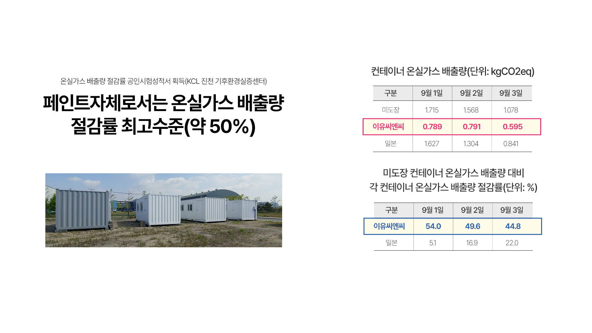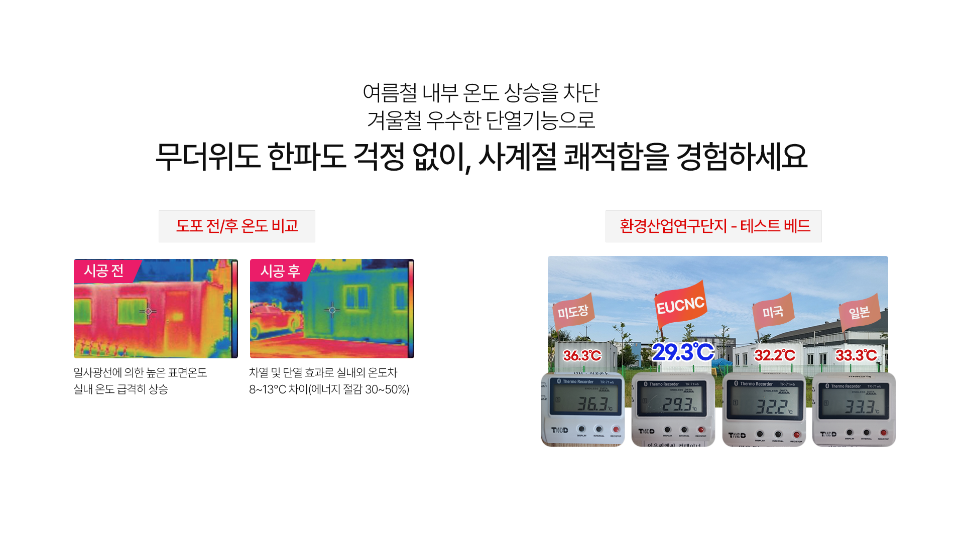 - 당사 도료 적용시 8~13℃ 실내온도 감소